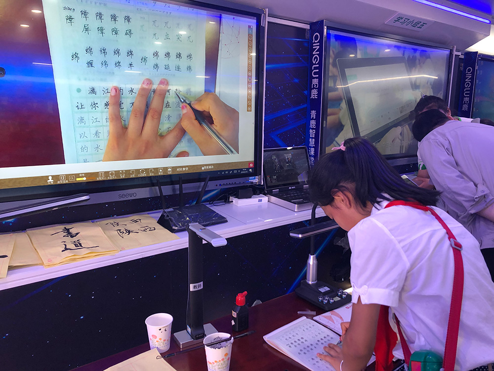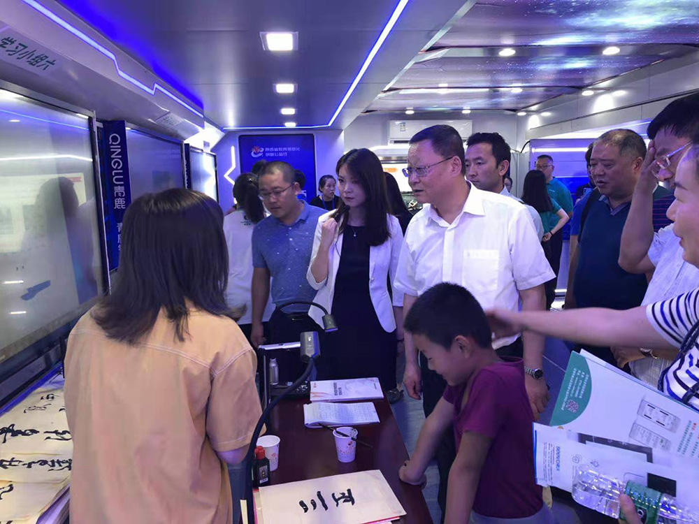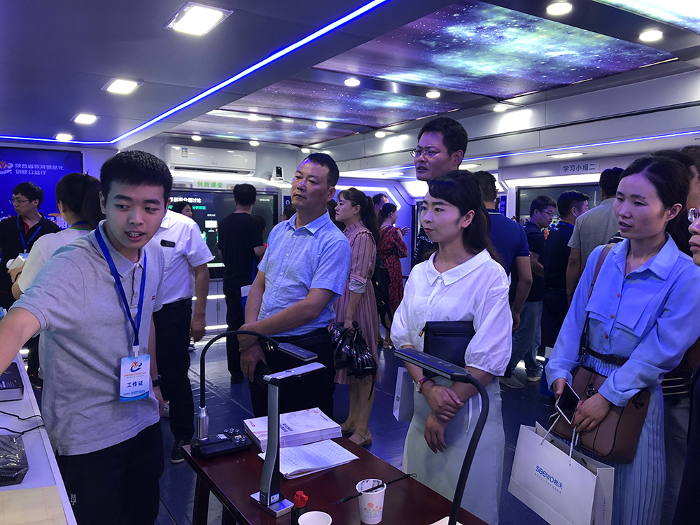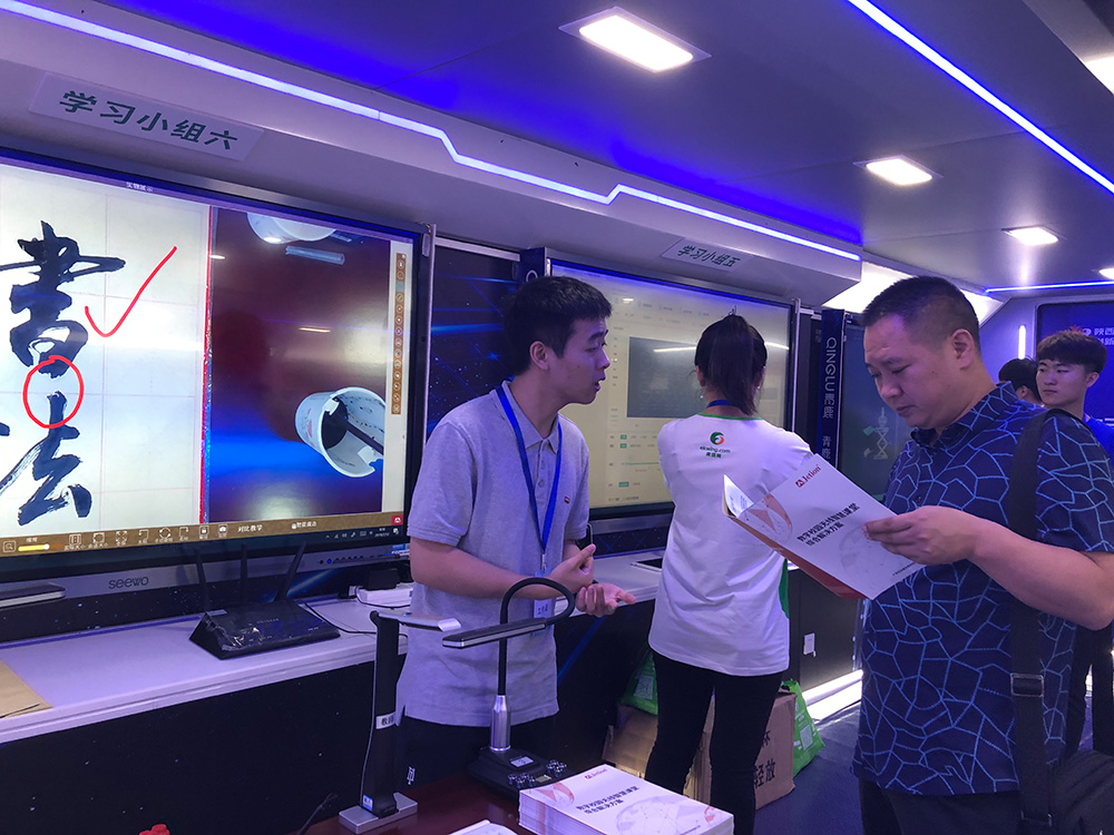 “創(chuàng)新公益行”大篷車首站在楊凌邰城實驗學(xué)校正式亮相,啟動儀式結(jié)束后,各級領(lǐng)導(dǎo)、師生紛紛走進(jìn)車內(nèi)進(jìn)行參觀體驗,吉星為大家?guī)碜钚碌闹腔坌@全互動系統(tǒng)、未來智慧書法教室等創(chuàng)新教育信息化應(yīng)用,贏得了前來參加活動的各位領(lǐng)導(dǎo)和師生的認(rèn)可。