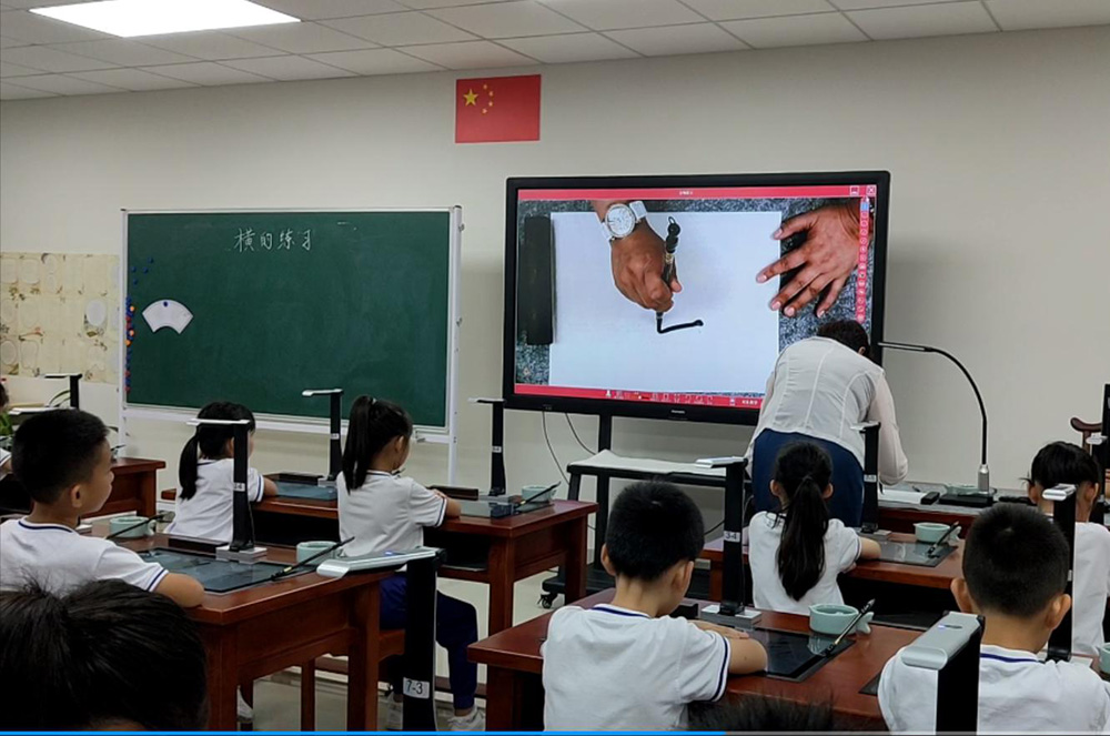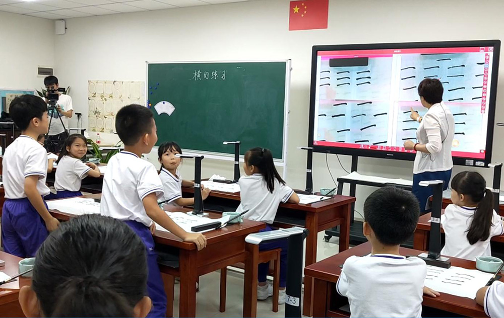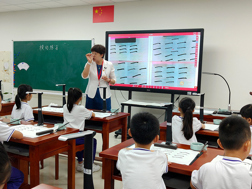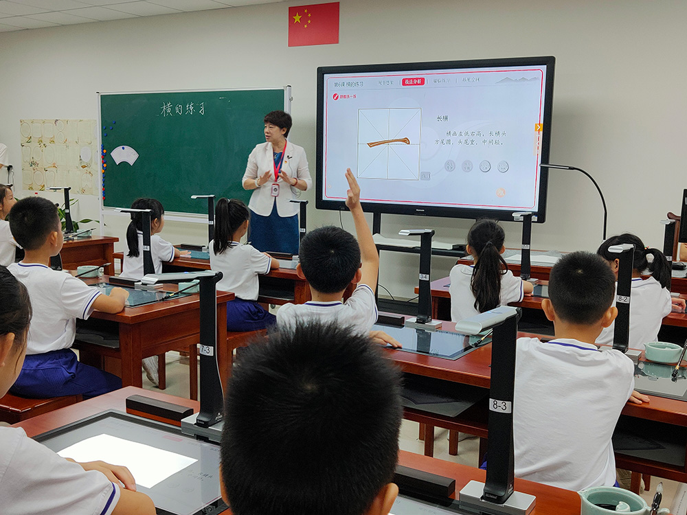 在6月下旬的書法特色教育創(chuàng)建與管理觀摩學(xué)習(xí)活動中,老師們觀摩了沙面小學(xué)姚丹校長執(zhí)教的書法示范課《橫的練習(xí)》,切身感受到吉星智慧書法課堂的魅力,體驗科技與書法的結(jié)合。