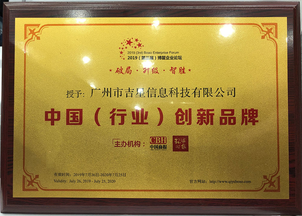 憑借著在教育行業(yè)的不斷探索深耕,廣州市吉星信息科技有限公司在本次2019(第三屆)博鰲企業(yè)論壇榮膺兩項大獎。廣州市吉星信息科技有限公司被授予“中國(行業(yè))創(chuàng)新品牌”榮譽稱號。