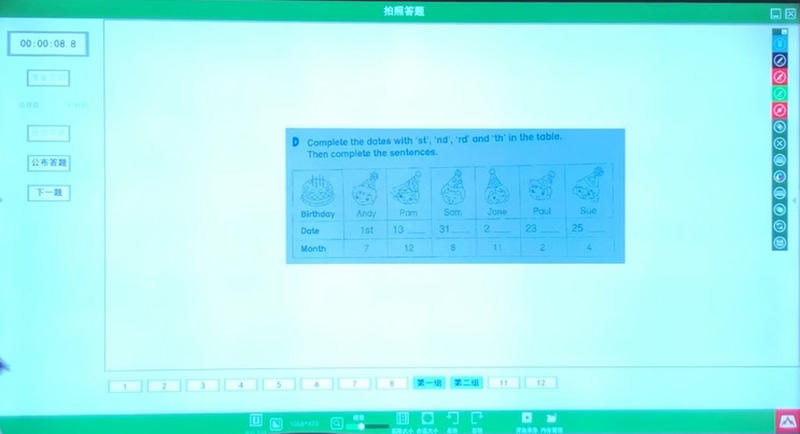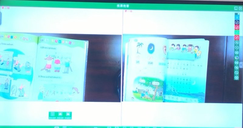 老師可通過投屏搶答、課堂搶答功能,同學(xué)們開始搶答,最先搶到的同學(xué)的桌面畫面會(huì)顯示在大屏