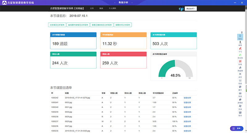 系統(tǒng)也會(huì)針對(duì)每道題的答題情況進(jìn)行智能分析,方便于老師教學(xué)
