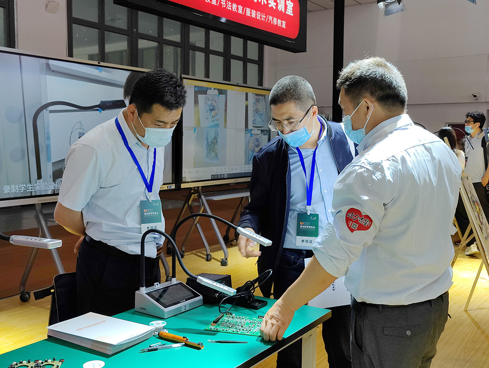 多臺設(shè)備的同時展示、同時錄制讓不少前來參觀的學(xué)校老師表達(dá)出贊嘆之情。