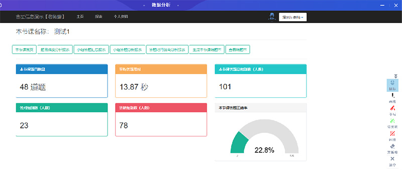 另外,試想一下,在課堂測驗中老師如果可以及時看到學生在每一道題目正確率和數(shù)據(jù)統(tǒng)計,在接下來的講解中就會更有側(cè)重點,對于學生學習情況的掌握也會更清楚。