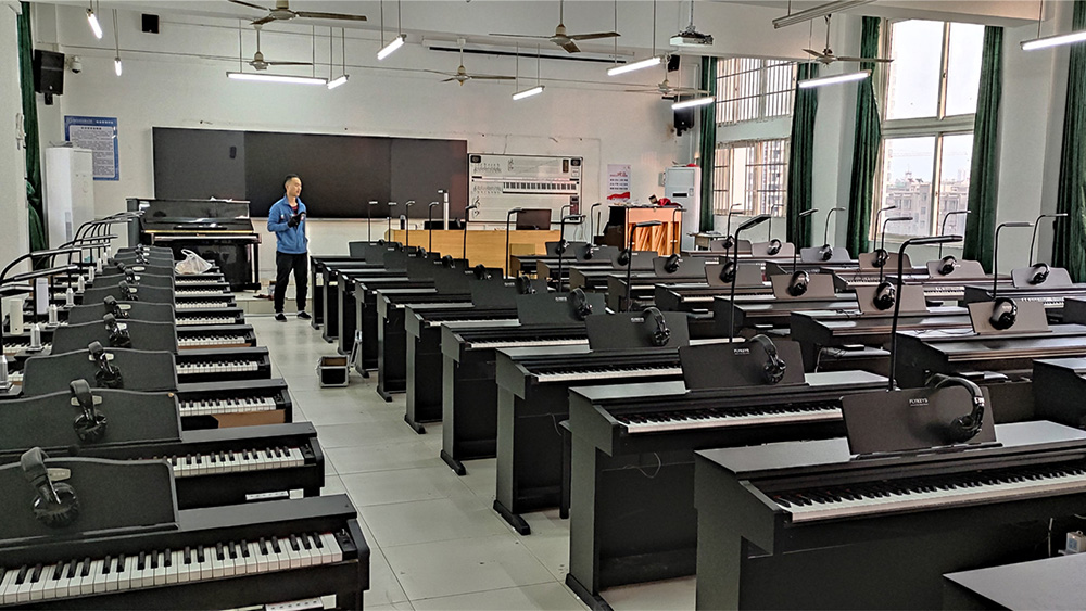 通過無線傳輸,教師的彈奏過程和細節(jié)能夠清晰展示在大屏上,全體學生無需圍觀,即可觀看。