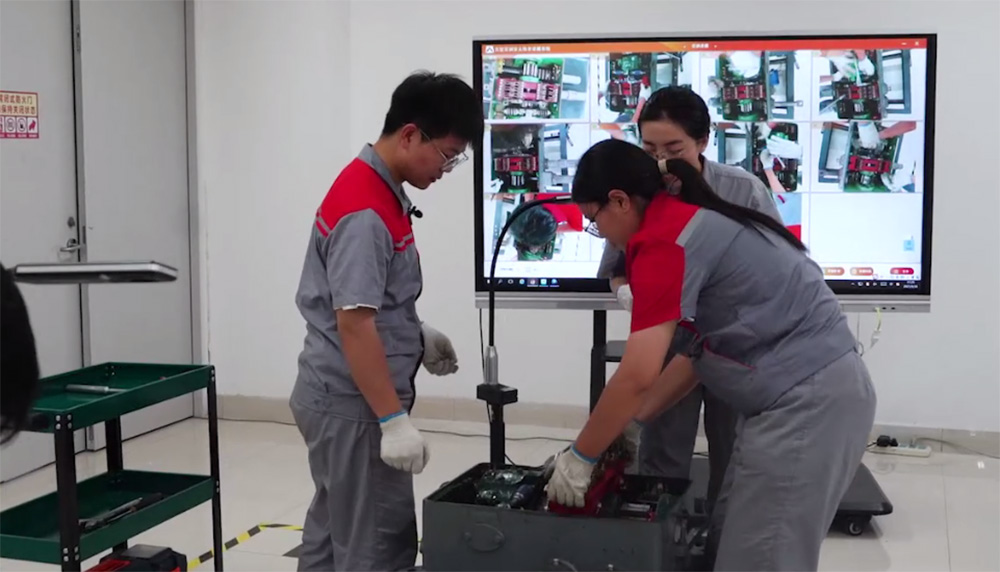 在鐵路維修中,需要使用大量的零配件進(jìn)行示范操作。可移動(dòng),可調(diào)整距離、角度的終端能夠?qū)⒉煌螤睢⒉煌笮〉呐浼?xì)節(jié)呈現(xiàn)在大屏上供學(xué)生觀看,無需圍觀。