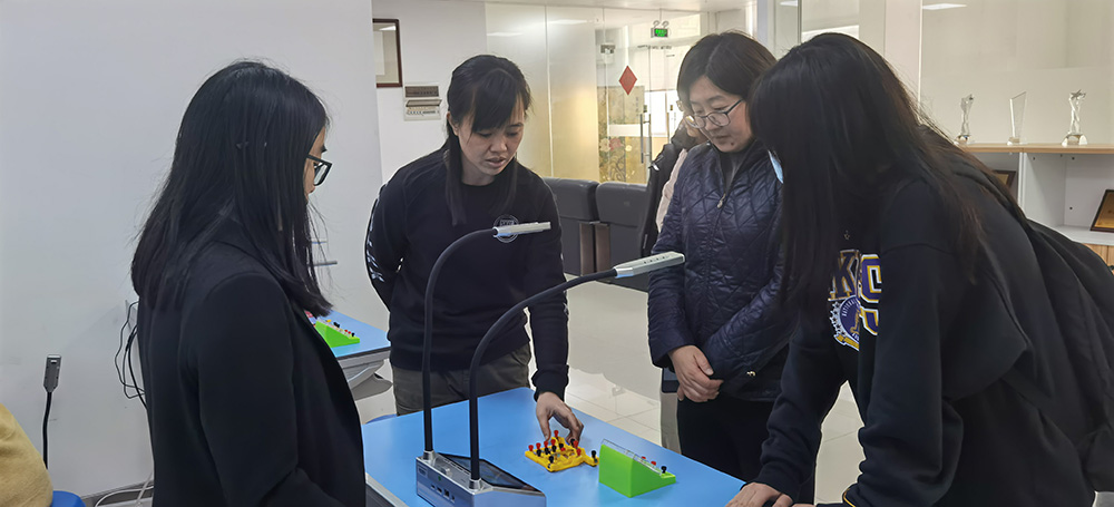 在這次的參觀交流中,張新華教授一行重點(diǎn)在共同探討與體驗(yàn)無(wú)線全錄播與強(qiáng)交互專(zhuān)遞課堂在STEM中的實(shí)際應(yīng)用。