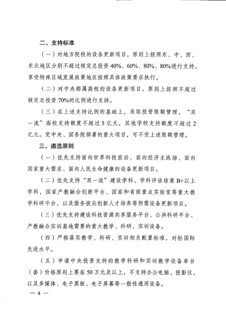 (五)申請中央投資支持的教學科研和實訓教學設備單臺(套)價格原則上要在50萬元及以上,不支持辦公電腦、投影儀,以及多媒體、電子黑板、電子屏幕等一般性通用設備。