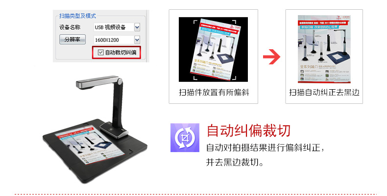 支持OCR識別,對掃描件實現(xiàn)智能定位;支持自動剪裁,自動糾偏; |