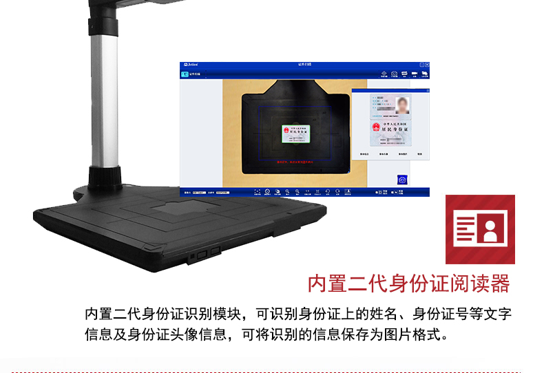 內(nèi)置二代身份證識(shí)別模塊,支持集成二代身份證閱讀器 |