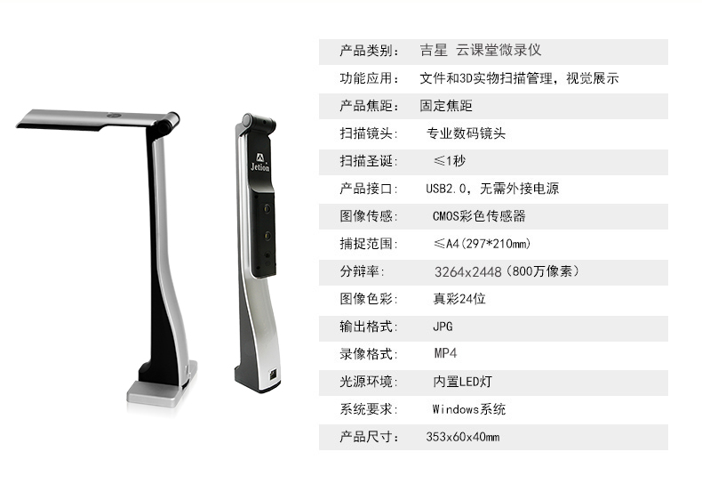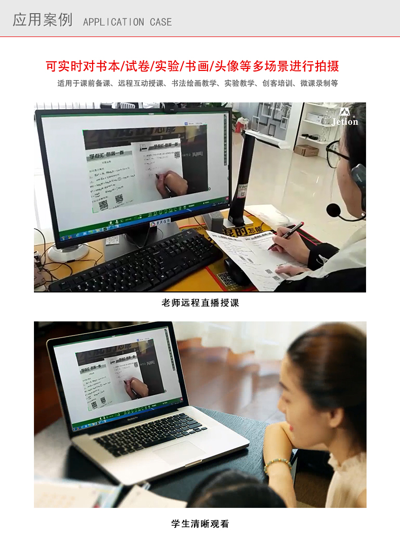 拍攝鏡頭 機(jī)械折臂270度翻轉(zhuǎn)式:90度可拍攝文稿;180度可拍攝課堂活動,用作簡易的錄播系統(tǒng);270度可錄制微課